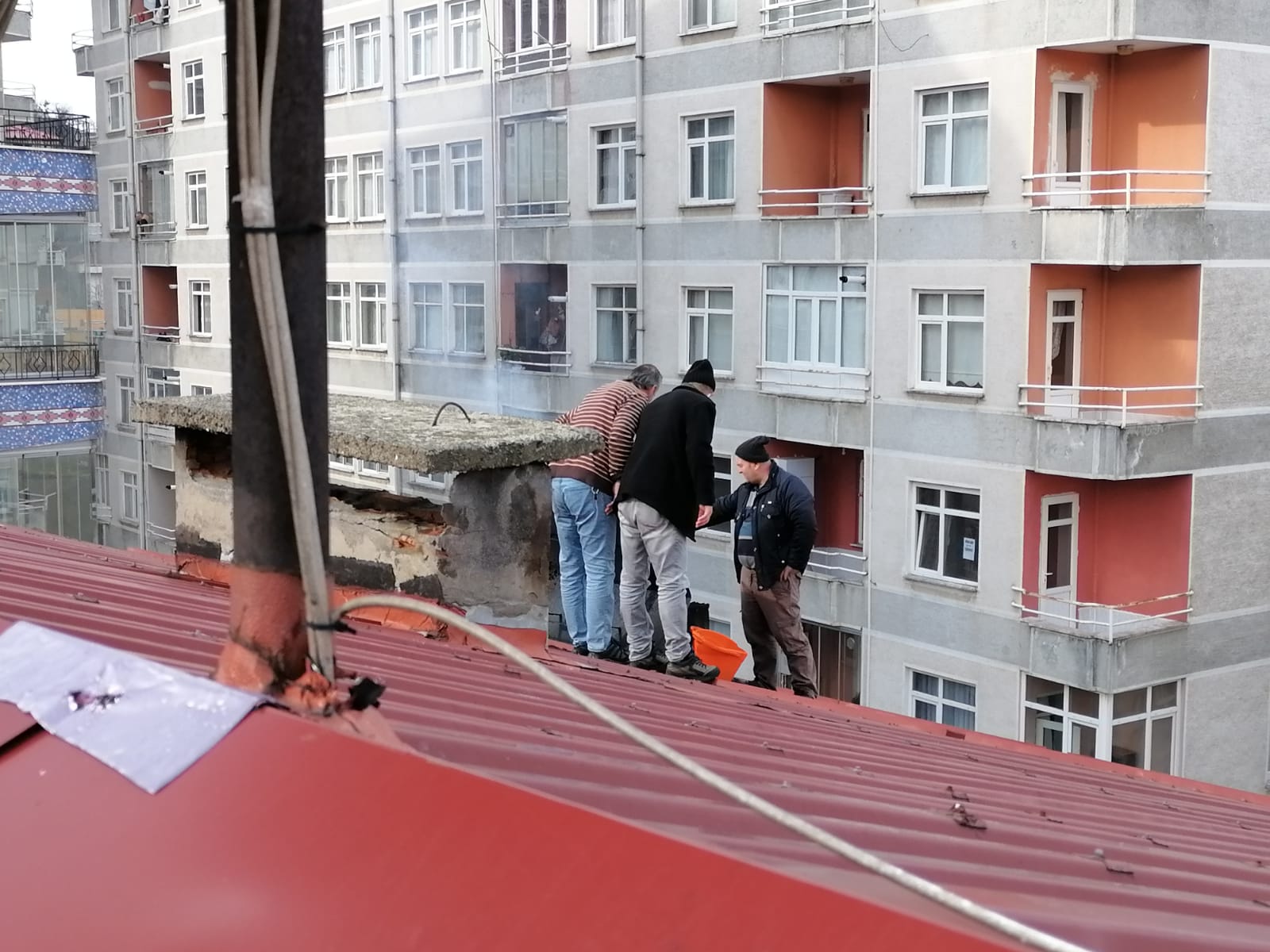 Rize'nin Pazar ilçesinde 11: 30 sularında doğalgazlı bir binanın sobalı olan dairelerden birinin bacasının tutuşmasını fark eden bina sakinleri kısa süreli panik yaşadı.