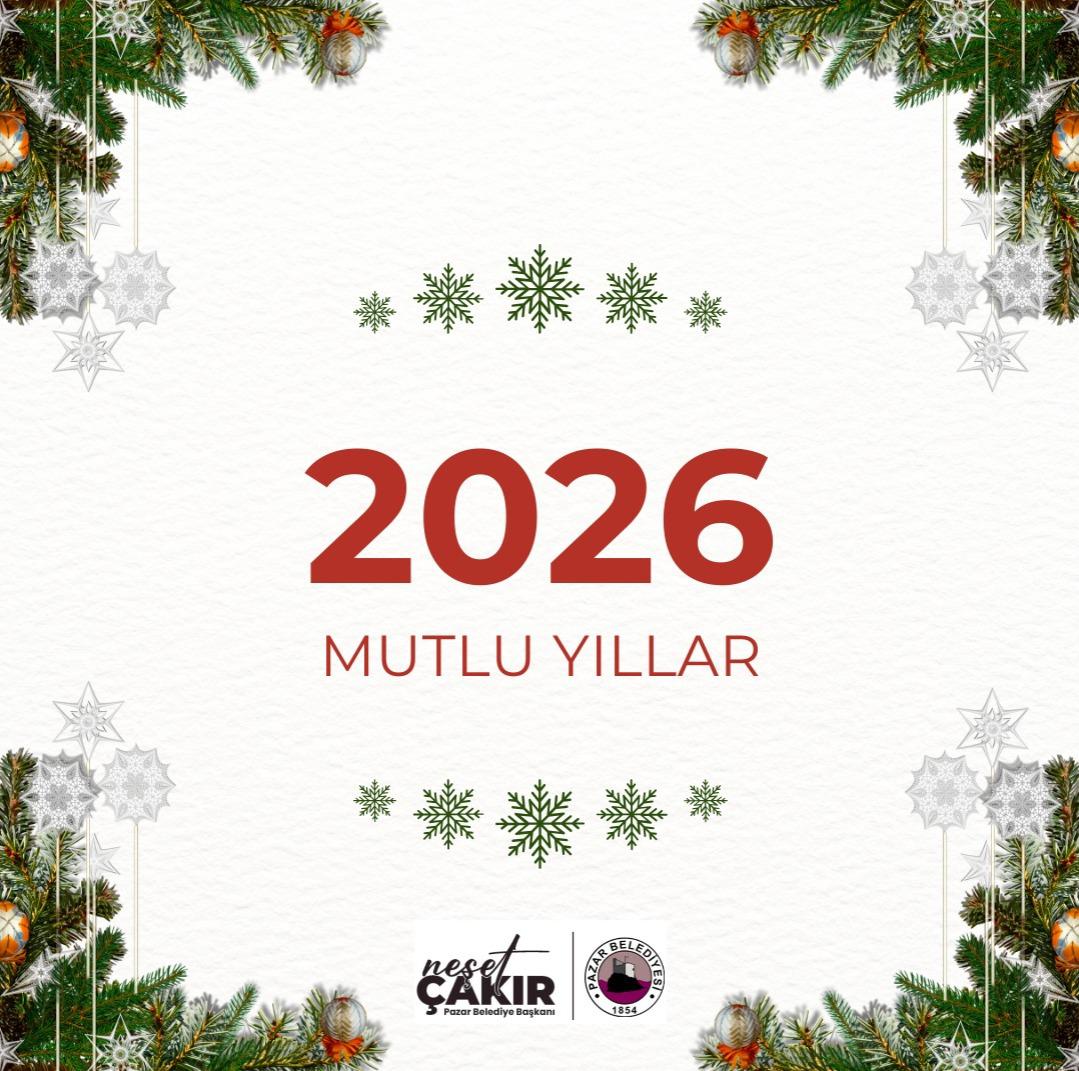 Değerli Pazarlı hemşehrilerim,Bir yılı daha geride bırakırken; yeni umutların, yeni hedeflerin ve güzel yarınların kapısını araladığımız yeni bir yıla hep birlikte girmenin mutluluğunu yaşıyoruz.2026 yılının ilçemize; sağlık, huzur, bereket ve kardeşlik getirmesini temenni ediyorum. Birlik ve beraberlik içerisinde, Pazar’ımızı daha yaşanabilir, daha güçlü ve daha güzel bir ilçe haline getirmek için aynı kararlılıkla çalışmaya devam edeceğiz.Bu duygu ve düşüncelerle; tüm hemşehrilerimin yeni yılını en içten dileklerimle kutluyor, sevdiklerinizle birlikte sağlıklı, mutlu ve umut dolu bir yıl geçirmenizi diliyorum.Neşet ÇakırPazar Belediye Başkanı