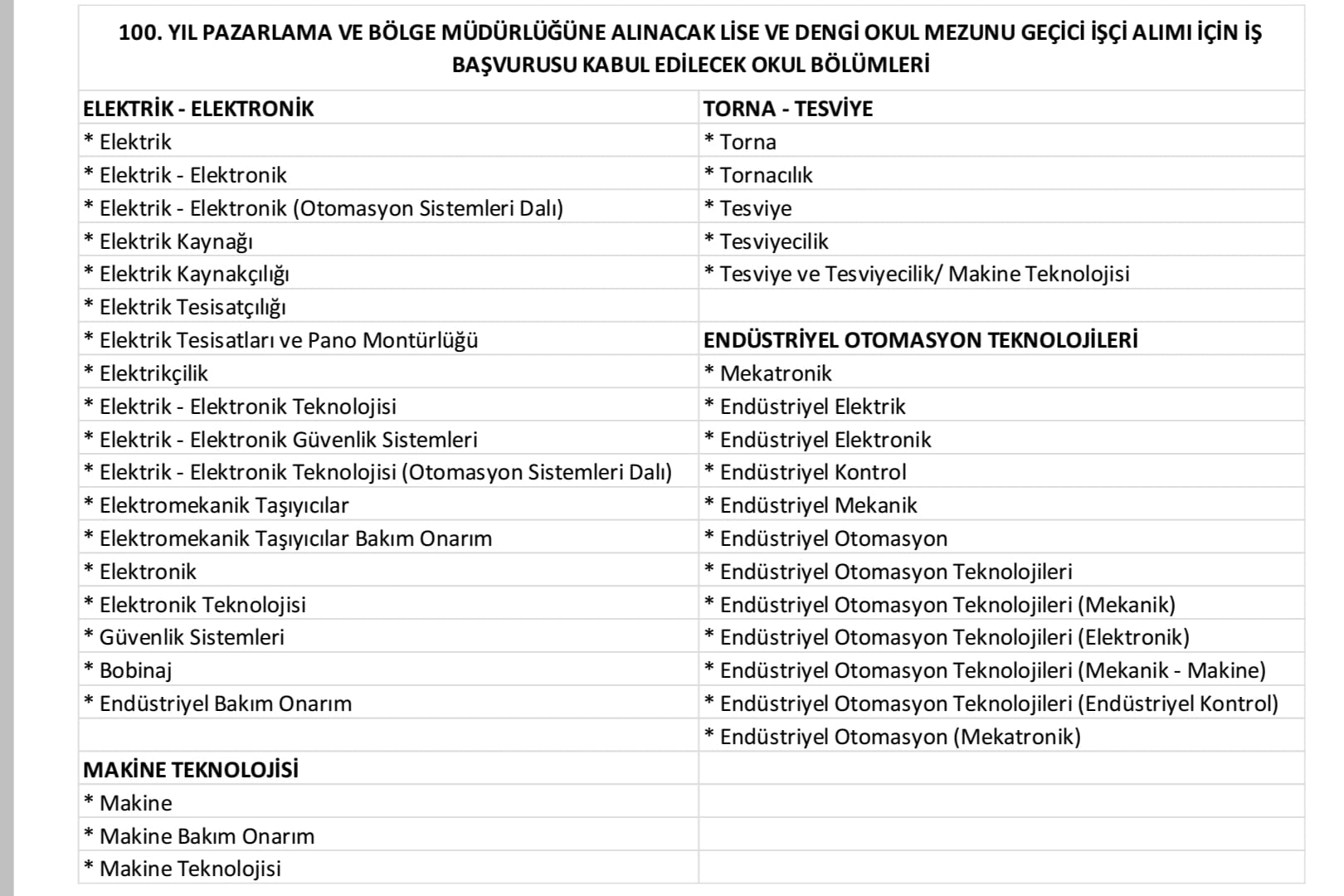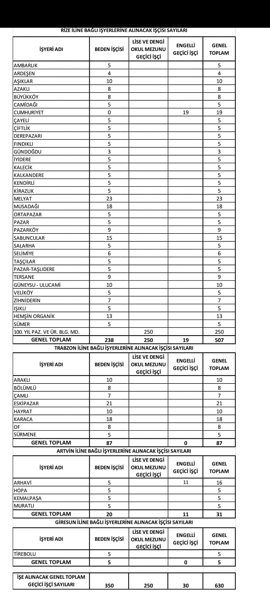 350 geçici beden işçisi (tahmil tahliye); Rize Cumhuriyet Çay Fabrikasına 19 engelli geçici işçi, Artvin Arhavi Çay Fabrikasına 11 engelli geçici işçi; 100. Yıl Pazarlama ve Üretim Bölge Müdürlüğüne 250 lise ve dengi okul mezunu teknik kariyerli geçici işçi noter kurası ile alınılacağının duyurusu yapıldı.