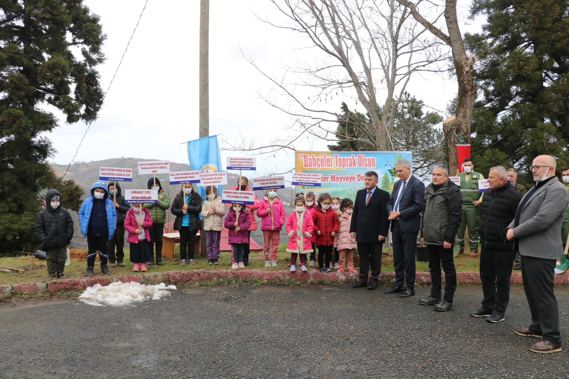 Valilikle eşgüdüm içerisinde aynı anda Vali Kemal Çeber’in katılımıyla gerçekleşen programa, İlçe Kaymakamı Mustafa Akın, İlçe Milli Eğitim Müdürü Nimet Büyük, İlçe Orman işletme Müdürü Mehmet Kanal, Öğretmen ve Öğrenciler katıldı