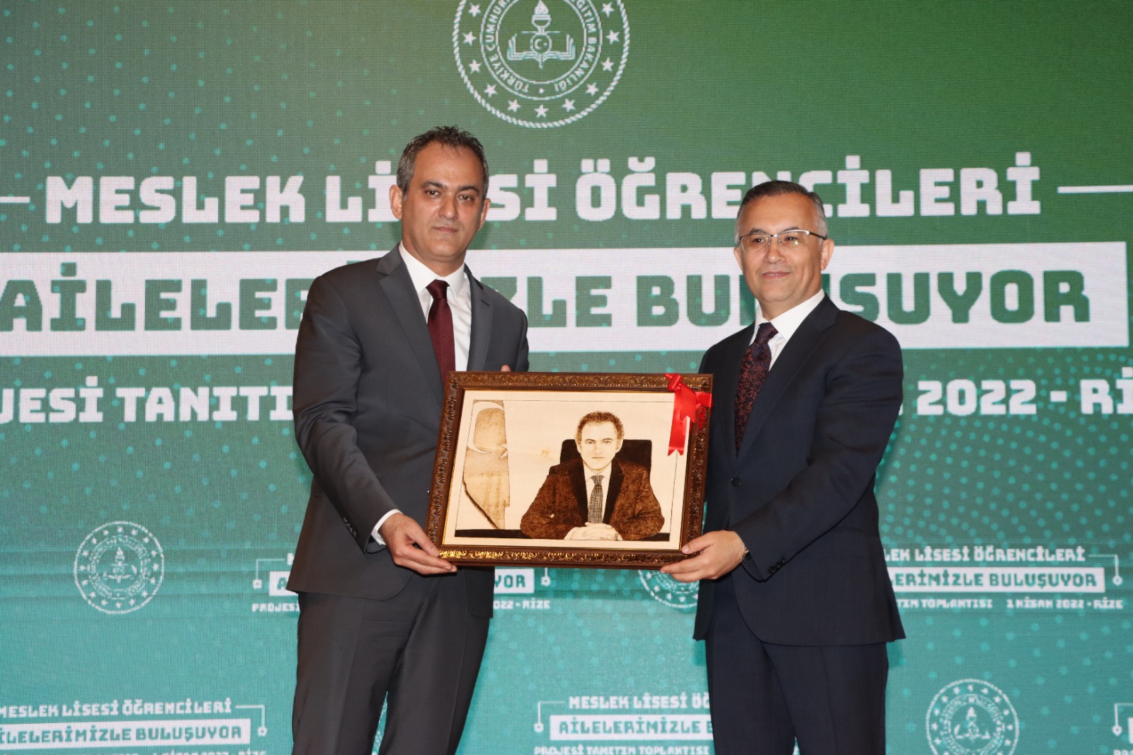 Rize Valisi Kemal Çeber tarafından Milli Eğitim Bakanı Mahmut Özer’e hediye takdimi ile devam eden toplantı Aile fotoğrafı çekilmesiyle son buldu.
