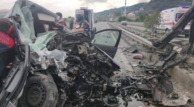 Çarpmanın etkisiyle hurdaya dönen araçta sıkışan sürücü Yusuf Kiraz ağır şekilde yaralanırken ön koltukta oturan Rize Pazar nüfusuna kayıtlı Ayşenur Doğan (22) hayatını kaybetti.