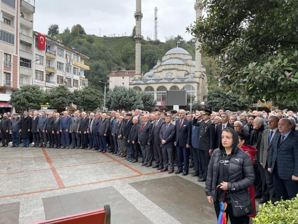 AJANS PAZAR Türkiye Cumhuriyetinin kurucusu Gazi Mustafa Kemal Atatürk, vefatının 84. yılında tüm yurtta olduğu gibi Pazar’da da törenlerle anıldı.Pazar 15 Temmuz Demokrasi Meydanındaki anma töreninde Atatürk Anıtına Kaymakamlık, İlçe Garnizon Komutanlığı ve Belediye Başkanlığı çelenkleri sundu.Anma töreni saat 09.05'te sirenlerin çalmasıyla başladı. Saygı duruşunda bulunulan törende, İstiklal Marşı okunarak Türk Bayrağı yarıya indirildi.15 Temmuz Demokrasi Meydanı’ndaki Atatürk anıtı önünde yapılan tören, Pazar Kaymakamı Mustafa Akın, İlçe Garnizon Komutanı Hava Üsteğmen İhsan Erdemir ve İlçe Belediye Başkanı Ahmet Basa, Pazar Bölge Adliyesi Cumhuriyet Başsavcısı Mustafa Erbaş, daire amirleri, siyasi parti temsilcileri, STK temsilcileri ve öğrenci ve vatandaşların katılımıyla gerçekleştirildi.Anma programına, 09.30'da Pazar Mesleki ve Teknik Anadolu Lisesi (MTAL) Konferans Salonunda devam edilmek üzere sona erdirildi.