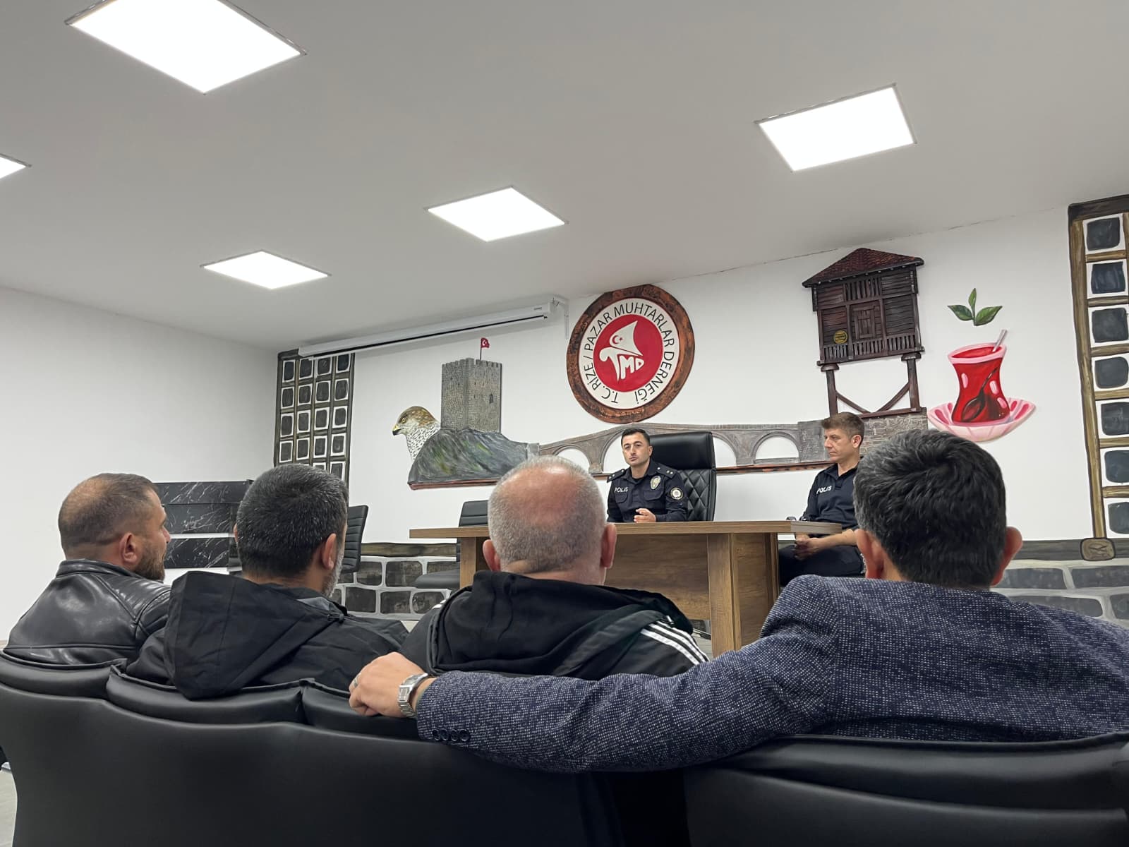 Haber / Fotoğraf: Cevahir Topaloğlu - Murat SinanPazar İlçe Emniyet Müdürlüğü Şehit Resul Morgil Polis Merkezi Amirliği sorumluluk alanındaki mahalle muhtarlarının katılımıyla yapılan “Huzur ve Güvenlik Toplantısı”nda, Pazar’ın genel güvenlik ve asayişini etkileyen konular değerlendirildi. Yapılması gereken çalışmalar, alınması gereken önlemler, ihtiyaç ve sorunlar ile kurumlar arası koordinasyon gerektiren hususlar görüşüldü.Pazar Muhtarlar Derneği binasında gerçekleştirilen toplantıya; Polis Merkezi Amiri Bahtiyar Karadaş, Muhtarlar Derneği Başkanı Ali Rıza Avcı ve mahalle muhtarları katıldı.Toplantıda, vatandaşların can ve mal güvenliğini sağlamak amacıyla emniyet teşkilatının 7 gün 24 saat görev başında olduğu hatırlatıldı. Mahallelerde meydana gelen her türlü sorunla ilgili 112 Acil Çağrı Merkezi’nin ve ilgili birimlerin aranabileceği, görevli ekiplerin her zaman vatandaşların hizmetinde olduğu ifade edildi.Konuşmaların ardından sohbet havasında devam eden toplantıda mahalle muhtarlarına tek tek söz verilerek sorun ve talepleri dinlendi. Polis Merkezi Amiri Bahtiyar Karadaş, muhtarlar tarafından dile getirilen tüm sorunların not alındığını belirterek, iletilen konular doğrultusunda suç ve suçlulara yönelik çalışmaların kararlılıkla sürdürüleceğini ifade etti.