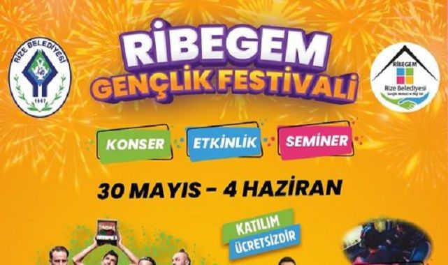 Rize Belediyesi gençlik Merkezi ve Bilgi Evi (RİBEGEM) tarafından organize edilen 30 Mayıs – 4 Haziran tarihleri arasında gerçekleştirilecek ‘Gençlik Festivali’nde Manga gurubu, Yasemin Yıldız konserinin yanı sıra birbirinden eğlenceli etkinlikler ve söyleşiler düzenlenecek. Bütün etkinliklerin katılımı halka açık ücretsiz olacak.