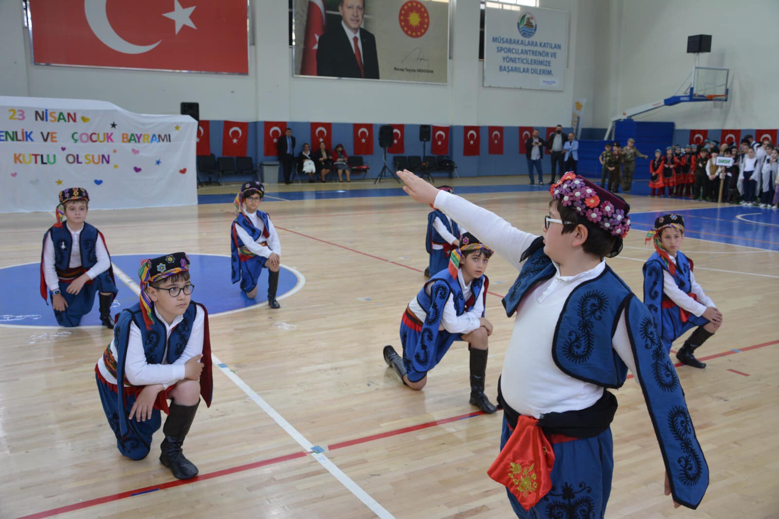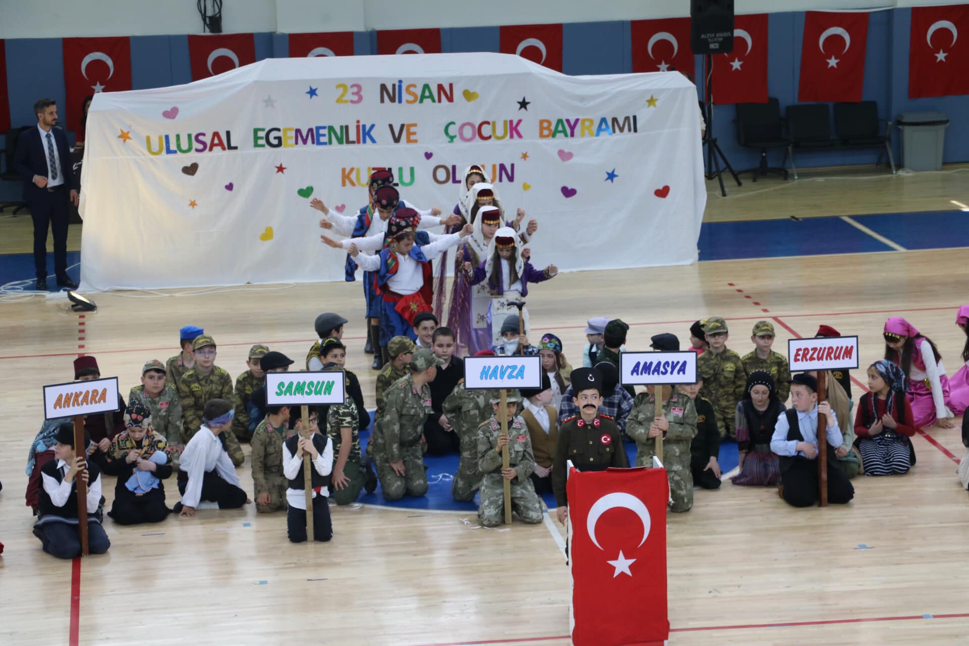Pazar’daki 23 Nisan Ulusal Egemenlik ve Çocuk bayram törenleri merasim alanındaki törenden sonra Pazar Mehmet Akif Pirim Spor Salonu’nda coşkuyla kutlandı.