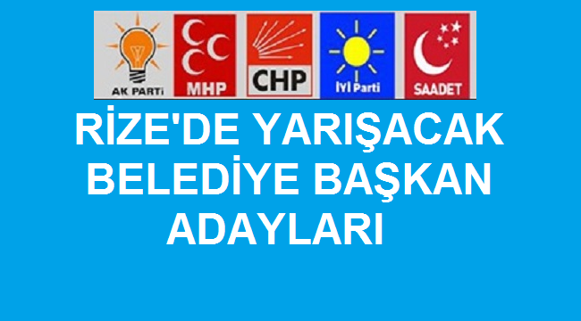 Rize'de; siyasi partilerin il ve ilçe seçim kurullarına sunduğu geçici aday listelerindeki belediye başkan adaylarının isimleri.