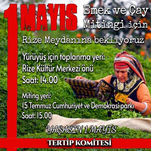 Deniz, 1 Mayıs emek ve Çay Mitingi için yaptığı açıklamada; yürüyüş için saat 14:00 da Rize İsmail Kahraman Kültür Merkezinde toplanarak saat 15:00 da başlayacak olan Rize 15 Temmuz Cumhuriyet ve demokrasi parkında emekçiler ve çay üreticileri ile bir araya geleceklerini ifade etti.