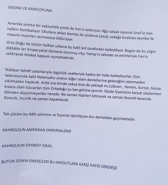 AJANS PAZARRize Pazar’da SOL Parti İlçe Örgütü, 2 Mart 2026 Pazartesi günü saat 13.00’te Pazar Demokrasi Meydanı’nda basın açıklaması düzenledi. Açıklamada, ABD ve İsrail’in İran’a yönelik saldırılarına tepki gösterilerek “katliamlara dur” çağrısı yapıldı.Parti adına yapılan açıklamada, ABD’nin “sınırsız bir eşkıyalıkla İran’a saldırdığı” ve İsrail ile birlikte İran halkını hedef aldığı ifade edildi. Saldırılarda sivillerin, çocukların ve masum insanların hayatını kaybettiği öne sürülen açıklamada, Ortadoğu halklarının yıllardır benzer müdahalelere maruz kaldığı savunuldu.Açıklamada, ABD eski Başkanı Donald Trump ve İsrail Başbakanı Benjamin Netanyahu’ya yönelik sert ifadeler kullanılarak, bölgedeki gelişmelerin “emperyalist politikaların sonucu” olduğu iddia edildi. Netanyahu’nun diğer İslam ülkelerini de hedef gösterdiği öne sürülen açıklamada, “Sırada kim var?” sorusu yöneltildi.Lübnan, Yemen, Suriye ve Gazze’de yaşanan çatışmalara da değinilen açıklamada, Ortadoğu’nun “silah tüccarlarının çıkarları uğruna kan gölüne çevrildiği” ileri sürüldü. Türkiye’deki askeri üsler de gündeme getirilerek Kürecik ve İncirlik üslerinin kapatılması çağrısında bulunuldu.SOL Parti Pazar İlçe Örgütü açıklamasının sonunda şu sloganlara yer verdi:“Kahrolsun Amerikan emperyalizmi”“Kahrolsun Siyonist İsrail”“Bütün dünya emekçileri bu haydutlara karşı direnişe”Basın açıklaması, sloganların ardından sona erdi.