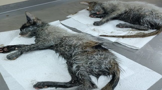 Rize Pazar’da yaşanan olayda kimliği bilinmeyen vicdansızlar iki kediyi yanmış motor yağının içine atarak ölüme terk etti.